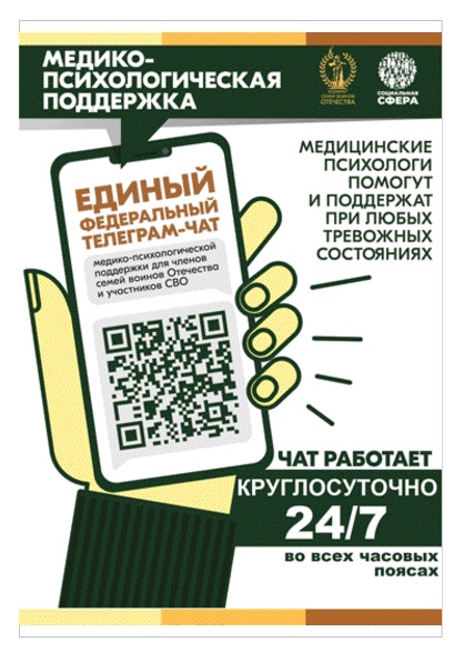 Единый федеральный телеграмм-чат медицинской психологической поддержке для семей воинов Отечества и участников СВО: https://t.me/+-NlCAoiZghk2OTNi